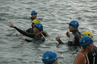 Arrived in good time to get my transition area set up in the rain! Weather was not ideal, but I'll take the rain over the blistering heat. It was a pretty relaxed atmosphere, lots of pretty bikes to look at (bad for my addiction), and I stayed pretty calm. After the pre-race talk got into my wet suit and got in the water. Did a 100-200m swim warmup, just took it slow and easy, got used to the water and the wet suit and just really tried to calm myself down.